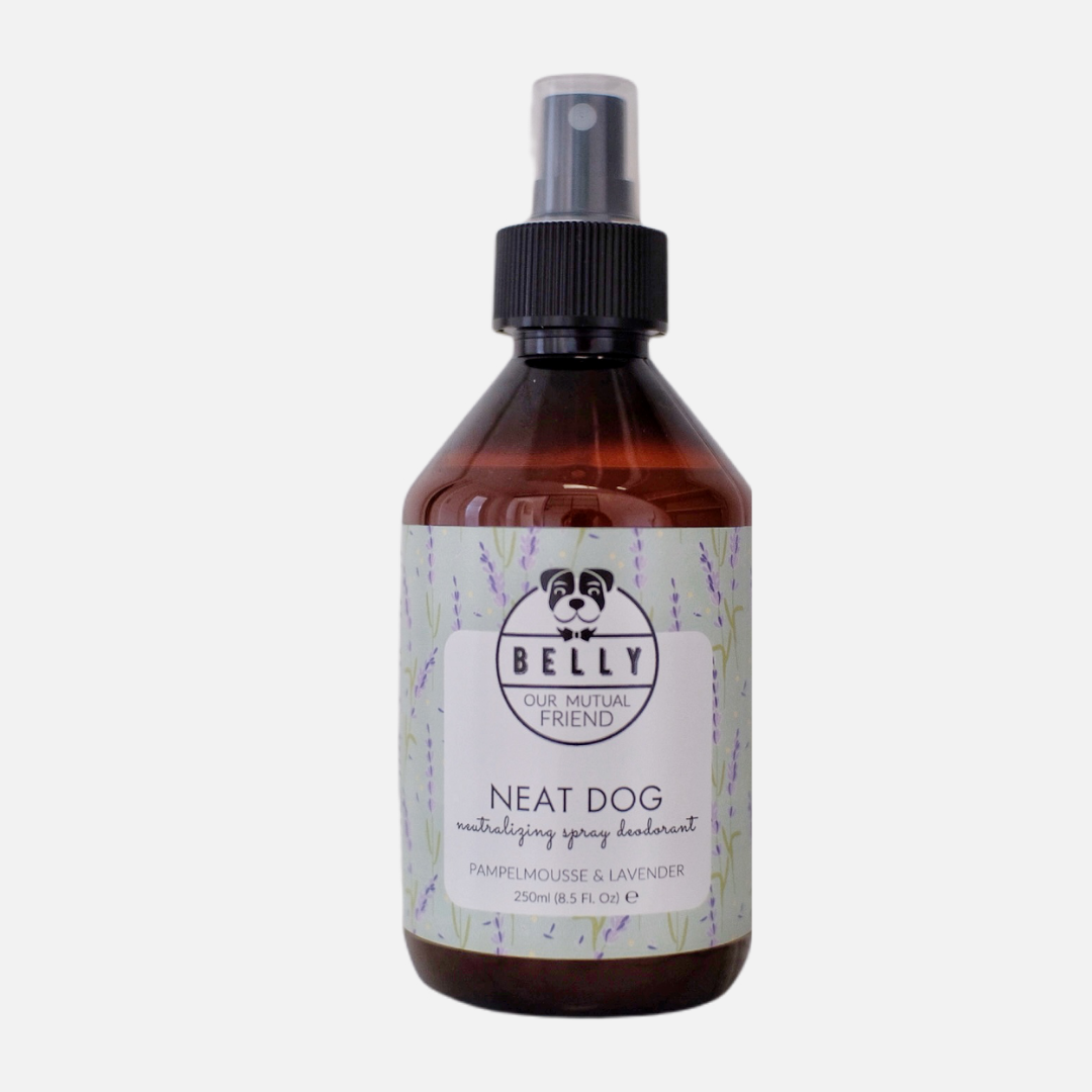 Natürliches erfrischendes Hundeparfüm mit Lavendel und Pamplemousse. Es überdeckt und neutralisiert schlechte Gerüche und hinterlässt einen himmlisch guten und lang anhaltenden Geruch. Perfekt für unterwegs und wenn keine Zeit für ein Hundebad ist.